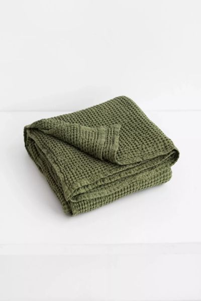 Linen-cotton blend throw in various colors. Add style and comfort to your home with this super-soft linen and cotton blend waffle throw in forest green. You can use it as a stylish decor detail in any room of the house - it will look great on a chair, sofa or on your bed. The size of the throw also makes it perfect for when the temperature outside starts to dip, use it as a wrap around to keep warm and cozy. Includes one blanket Available in: 53x81" / 135x205cm Made from linen (53%) and cotton (47%) blend Stone washed for maximum softness Imported MagicLinen Waffle Throw in Forest Green at Urban Outfitters