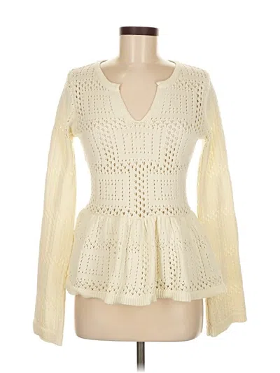 Magnolia Pullover Sweater, Size: Medium. Item Details: Ivory, Plunge Neckline, Long Sleeve, Peplum, Women's Tops, 100% Polyester