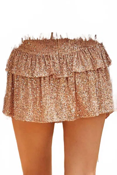 Coco Sequin Ruffle Mini Skort In Champagne In Brown