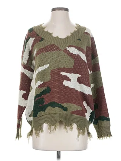 Main Strip Pullover Sweater, Size: Small. Item Details: Green, Camo Pattern, Scoop Neck, Long Sleeve, Frayed Edges, Women's Tops