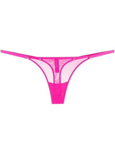 hot pink thong style semi-sheer construction silver-tone hardware stretch-design Just a reminder that this piece must be tried on over your own garments.