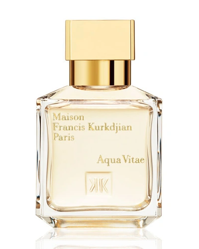 Maison Francis Kurkdjian Aqua Vitae Eau de Toilette, 2.4 oz. The delicious whisper of Aqua Vitae triggers an irresistible craving for tender kisses on the neck. This eau de toilette awakens the senses, tickled by lemon from Calabria, mandarin from Sicily, hedione, vanilla absolute, tonka bean, and guaiac wood. Olfactory Family: Musky woody citrus Top Notes: Lemon from Calabria, Mandarin from Sicily Heart Notes: Guaiac wood Base Notes: Vanilla in.