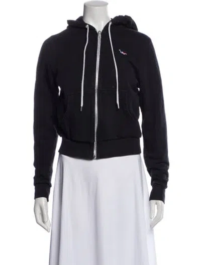 Maison Kitsuné Jacket Blue With Hood Embroidered Accent & Collarless Zip Closure Fit: Jackets by Maison Kitsuné typically fit true to size. | Maison Kitsuné Jacket in Blue, Women's S