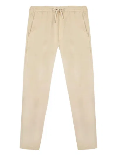 beige drawstring fastening side slash pockets rear welt pocket straight leg