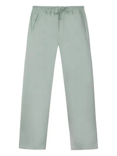 sage green drawstring fastening side slash pockets straight leg rear welt pockets