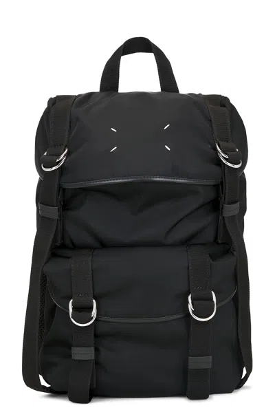 Maison Margiela High Tech Medium Backpack in Black - Black. Size all. Nylon exterior and lining. Foldover top with dual adjustable strap and buckle closure. Drawstring top closure. One main compartment. One interior patch pocket. One front pouch pocket and side mesh pockets. Measures approx 11.5 W x 19 H x 5 D. MMAR-MY121. SB1WA0016-P6763-T8013. About the designer: After graduating from Antwerp's Royal Academy of Fine Arts, where he studied alongside the Antwerp Six, Belgian designer Martin Margiela went on to work with several notable designers, including Jean Paul Gaultier, before establishing his eponymous line in 1989. Known for keeping an extremely low profile, Margiela is noted for his avant-garde approach to fashion and art of deconstruction. Although Margiela no longer actively heads the company, the line continues to push the boundaries of contemporary fashion.