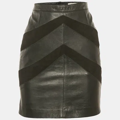 Pre-owned Black Leather & Suede Patterned Mini Skirt S