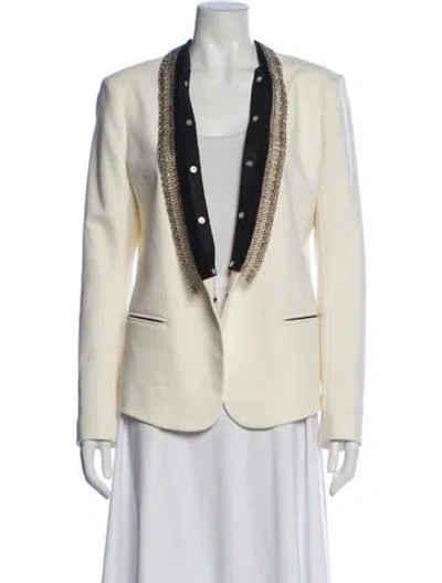 Maje Blazer Neutrals Chain-Link Accents & Shawl Collar Slit Pockets & Hook and Eye Closure Fit: Jackets by Maje typically fit true to size. | Maje Blazer in Neutrals, Women's M