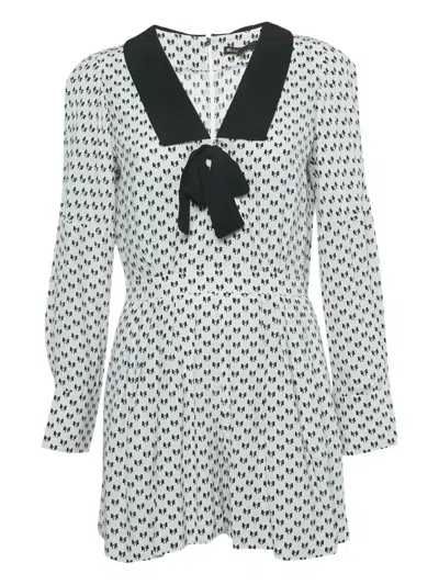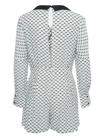 Pre-owned Bow-print Collared Playsuit In White