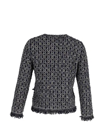 Pre-owned Button-front Tweed Jacket In Blue