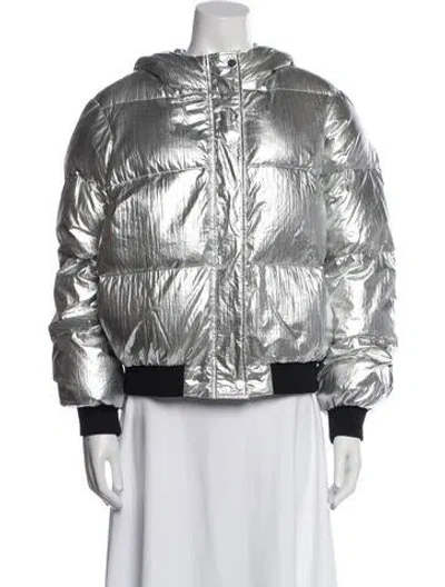 Maje Down Jacket Silver With Hood Stand Collar Slit Pockets & Zip Closure Designer size 2. Fit: Jackets by Maje typically fit true to size. | Maje Down Jacket in Silver, Women's M