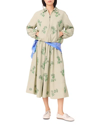 Maje Embroidered Technical Bomber Jacket.Color:Beige.Size:40 FR/8 US.Material:72% polyamide/28% cotton; lining: 100% cotton.Jackets.