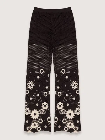 With comfortable materials and pastel colours, our collection celebrates a new kind of romanticism, where the Maje woman asserts herself confidently and effortlessly everyday. Made from organic cotton, these crochet trousers play on contrasts, featuring a fishnet fabric embroidered with dainty flowers. A short lining and elasticated waistband ensure a perfect fit. Ideal for sunny days, team with a matching top and sandals for an assertive look. Crochet trousers in organic cotton Mesh and floral embroidery Short lining Elasticated waist The model is 5'9 tall and wears a size 4