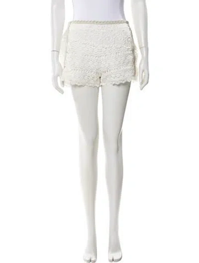 Maje Shorts White Lace Pattern High-Rise Crochet & Whipstitch Accents Slit Pockets Size not listed, estimated from measurements. Fit: Shorts by Maje typically fit true to size. | Maje Lace Pattern Mini Shorts in White, Women's XS