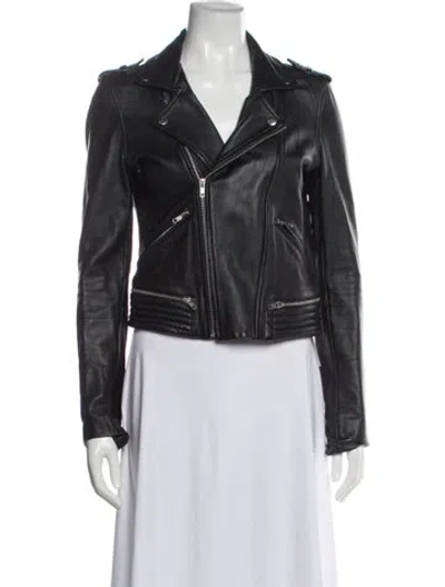 Maje Leather Biker Jacket Black Pointed Collar Zip Pockets & Zip Closure Fit: Jackets by Maje typically fit true to size. | Maje Leather Biker Jacket in Black, Women's M