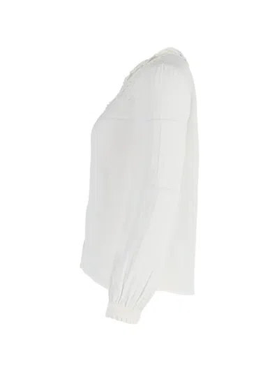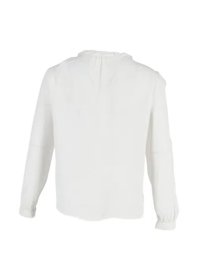 white cotton ruffles long sleeves button closure button front Condition: GOOD. This previously owned and used item is in good condition with minimal signs of use. This may include fading of material or plating and scratches.