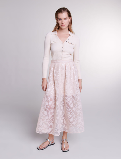 Maje polyester Beige. This Discover our new collection - a bold reinterpretation of Maje classics. Iconic pieces are transformed with contrasting materials and smart details to give your looks a new twist. A truly key piece for the season, this long, voluminous skirt is made from a knit fabric. Entirely embroidered with sparkling sequins, it features floral motifs creating a subtle interplay of sheer details. Featuring a short lining, it also has an elasticated waistband at the back and a zip fastening at the side. Ref: Mfpju01183 Fishnet knit skirt Embroidered sequins in floral design Short underskirt