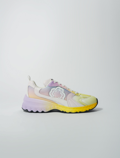 Maje cow Multi-Coloured. This This season, the studio is taking up the codes of running to revisit sneakers with a dose of fun and femininity. Featuring a slight arch and a small heel to combine flexibility and comfort, they feature a light and thick sole worked with a lace effect, inspired by English embroidery. Adorned with an embossed Clover and debossed studs, they reveal a play of materials, mixing leather and mesh, and reflective bands that bring light and movement to your look. Dare to contrast styles by pairing it with a floaty dress or loose jeans. Ref: Mfach00630 Sneakers with thick, soft sole Multicolor gradient Memory foam insole