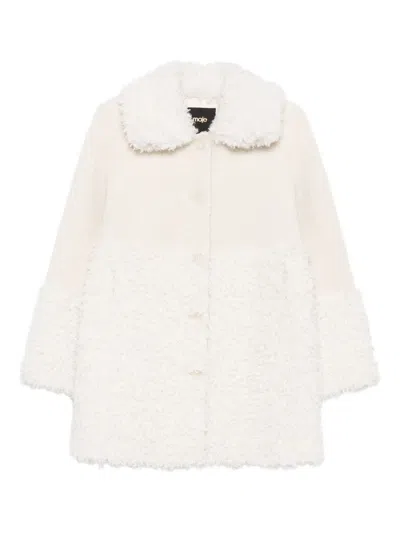 white textured fleece button fastening spread collar long sleeves straight hemline