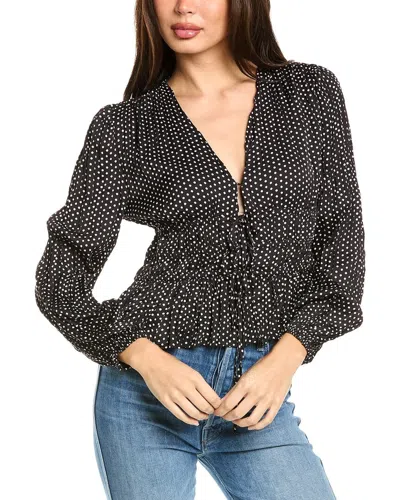 Introducing the Maje Top in Pois Clover Noir & Blanc, a stylish addition to your wardrobe. This top features elasticized cuffs and a self-tie waist for a flattering silhouette. Made from 100% polyester, this top is easy to care for with machine washable instructions. The model is 5'10' and is wearing a size T1. With a self-tie closure, this top is perfect for any occasion. Imported and approximately 21 inches from shoulder to hem, this Maje Top is a must-have in the women's clothing category.