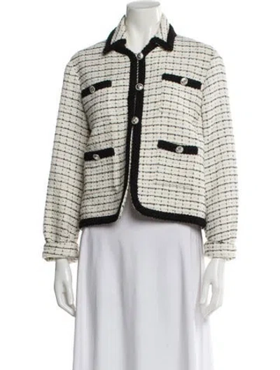 Maje Jacket White Tweed Pattern Glitter Accents & Pointed Collar Patch Pockets & Button Closure Fit: Jackets by Maje typically fit true to size. | Maje Tweed Pattern Jacket in White, Women's S