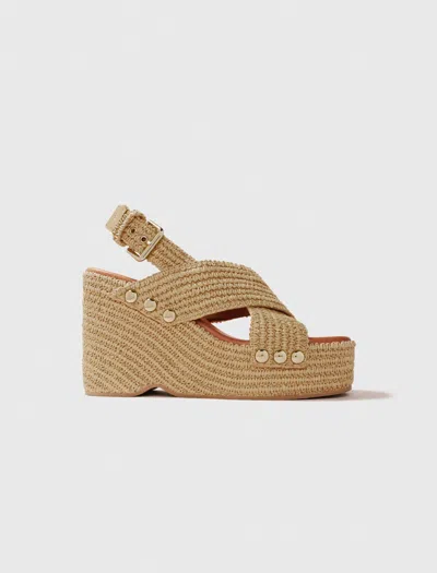 MAJE Wedge Sandals With Raffia Effect In Beige Light
