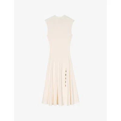 MAJE Womens Ecru Ribbed High-neck Stretch-knit Midi Dress In Neutral