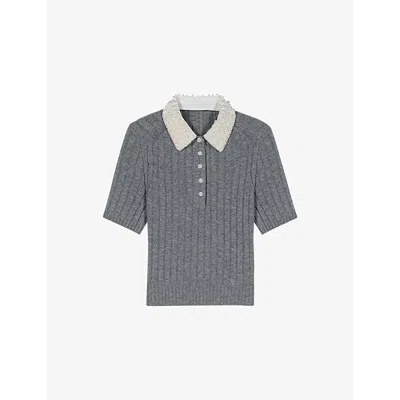 MAJE Womens Grey Beaded Removable-collar Stretch Wool-blend Jumper In Gray