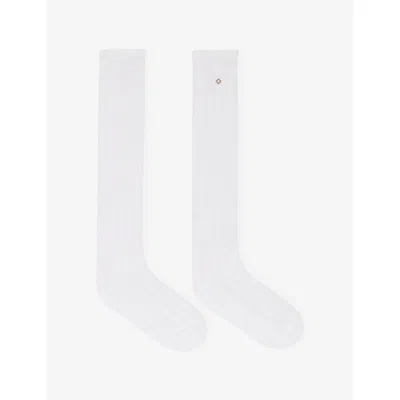 Womens White Pointelle Cotton-blend Knee-high Socks