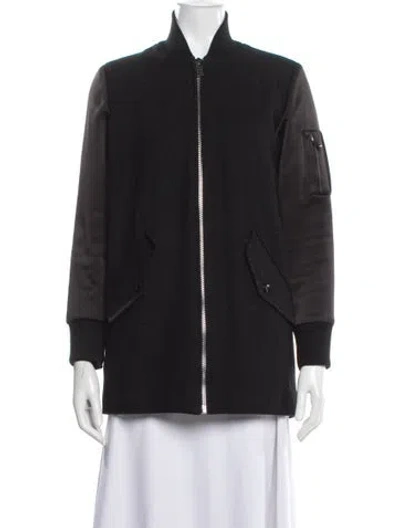 Maje Wool Bomber Jacket Black Stand Collar Flap Pockets & Zip Closure Fit: Jackets by Maje typically fit true to size. | Maje Wool Bomber Jacket in Black, Women's S