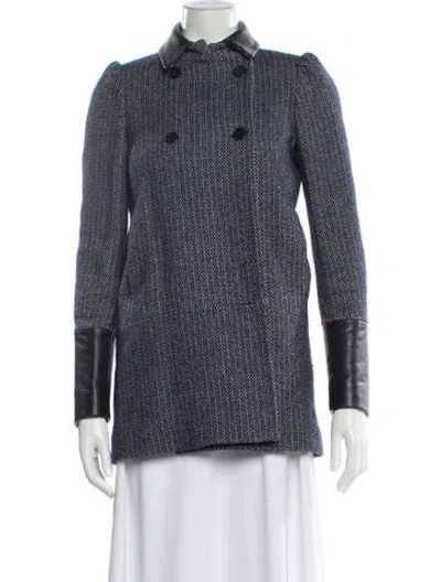 Maje Wool Jacket Blue Printed Pointed Collar Slit Pockets & Button Closure Fit: Jackets by Maje typically fit true to size. | Maje Wool Printed Jacket in Blue, Women's S
