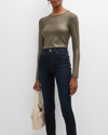 MAJESTIC Metallic Long-sleeve Viscose Tee In Kaki