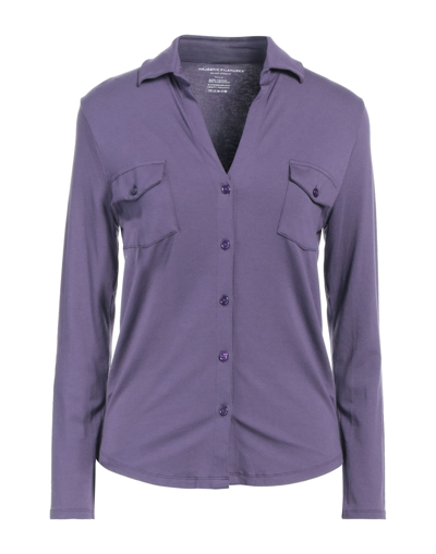 jersey, no appliqués, basic solid color, front closure, button closing, long sleeves, v-neck, two breast pockets, pocket with buttons, stretch , Color: Dark purple , Size: 1