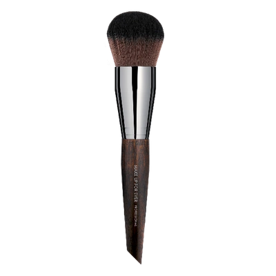 A medium, dome-shaped, dense brush for applying powders. This brush is particularly soft for generous, perfectly even application. Its thickness and density allow it to offer moderate-to-high coverage, and the long handle allows a grip farther from the tuft for increased movement when applying. It features both straight and wavy fibers, and can be used with loose and compact powders. . After five years in development with makeup artists and fiber experts, MAKE UP FOR EVER Artisan Brushes are a revolution in brush craftsmanship.