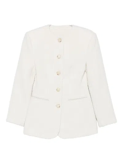 off-white tweed texture button closure collarless long sleeves welt pockets. Colour. : White. Composition. : Outer Composition Polyester: 50.0%, Lining Composition Polyester: 100.0%, Outer Composition Wool: 50.0%. Country Of Manufacture. : Bangladesh. MPN. : 12248214CAROLVANIL. .