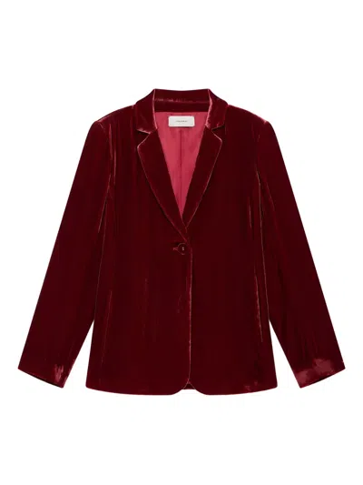 burgundy textured panel front button closure notched lapel long sleeves single-breasted