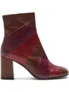 MALIPARMI Patchwork Block-heel Leather Boots In Burgundy