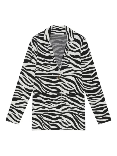 white black zebra print notched lapel button front fastening long sleeves straight hem