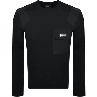 Mallet Nylon Patch Sweatshirt In Black. Ribbed crew neckline cuffs on the long sleeves and waistband. A velcro entry nylon pocket on the left of the chest with the signature Mallet logo metal stud is situated on it. Nylon panels on the shoulders. Main: 100% Organic Cotton. Lining: 95% Polyamide And 5% Elastane.