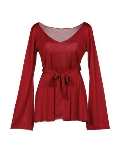 KnittedSashBasic solid colorV-neckLightweight sweaterLong sleevesNo pocketsSide slit hemline , Color: Burgundy , Size: L