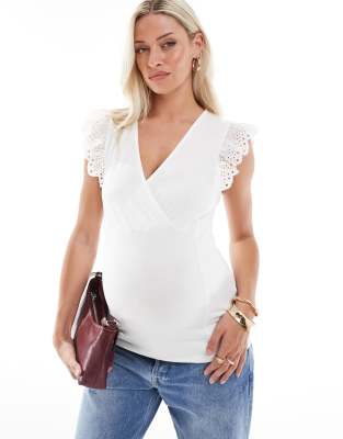 MAMA.LICIOUS Mamalicious Maternity 2 Function Jersey Top With Eyelet Sleeve Detail In White