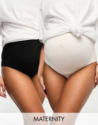 MAMA.LICIOUS Mamalicious Maternity 2 Pack High Waist Control Briefs In White And Black-multi