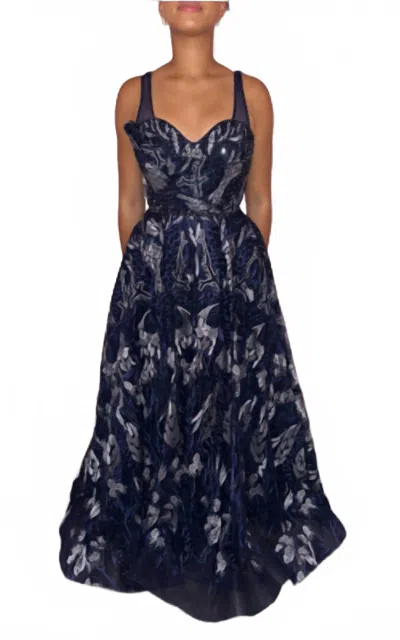 MAMBO COUTURE Beaded And Lace Applique Ballgown In Navy In Blue