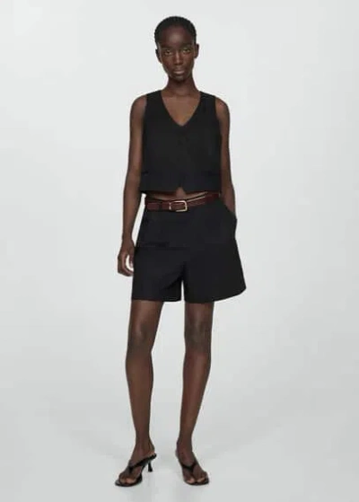 Tissu de coton et lin mélangé, Coupe courte, Droit, Taille haute, Deux poches latérales, Passants pour la ceinture, Fermeture Éclair avec agrafe et bouton dissimulés, Pinces, Total look