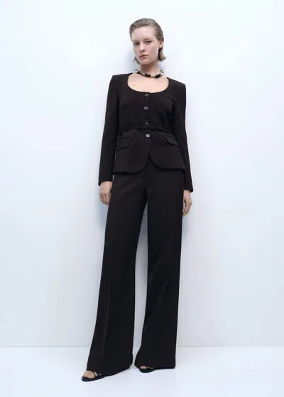 Lyocell-blend fabric, Suit style, Straight design, Round scoop neckline, Long sleeve with buttoned cuffs, Belt loops, Belt buckle fastening, Two side pockets with flaps, Front closure with buttons, Total look, Available Plus, Detachable belt, Hip-length design for a sleek fit, This garment belongs to our event collection, designed to make you the perfect guest at any party, wedding or ceremony