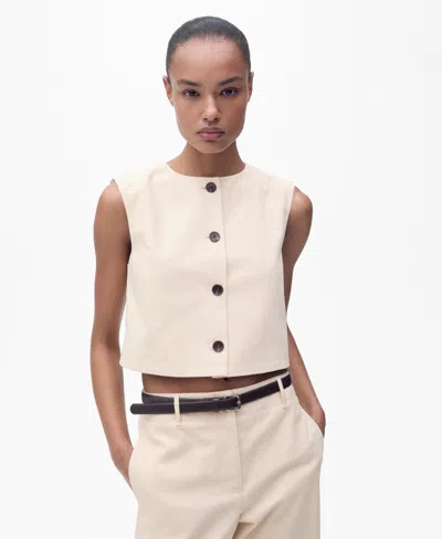 MANGO Button Cotton Crop Top In White
