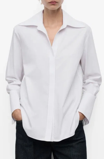 This crisp woven shirt is a go-to closet staple for layering and standalone wear. Hidden-button placket Spread collar Long sleeves with button cuffs 36% viscose, 34% polyester, 30% cotton Machine wash, line dry Imported