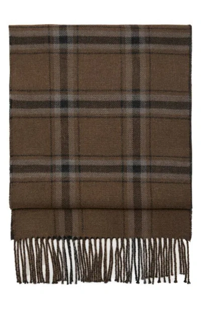 Complement your cold-weather look with this cozy scarf done in timeless plaid and finished with fringe trim. 85% polyester, 15% viscose Spot clean Imported