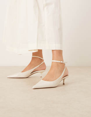 MANGO Classic Ankle Strap Kitten Heels In Neutral