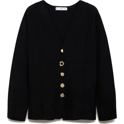MANGO Compact Knit Jacket With Statement Buttons In Black